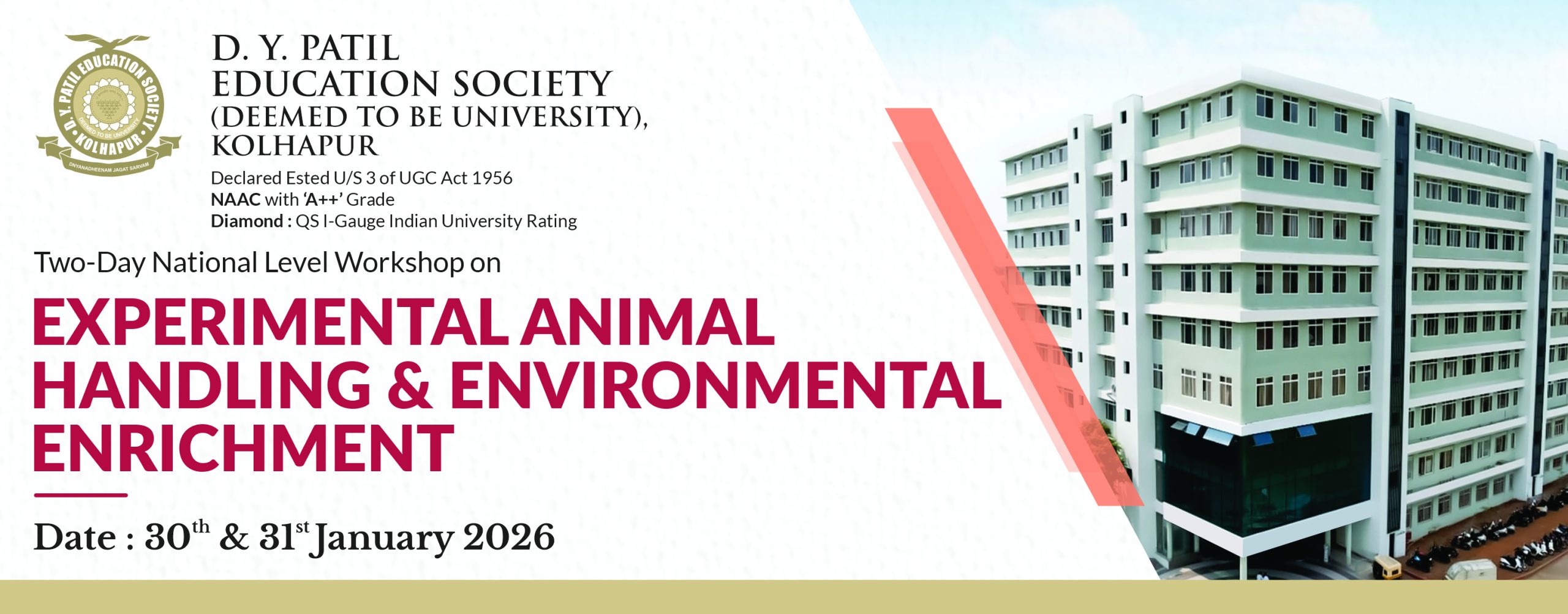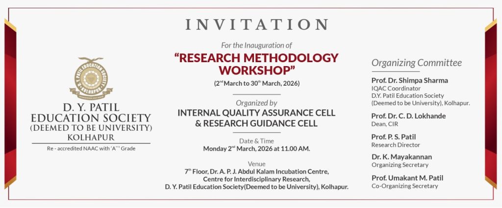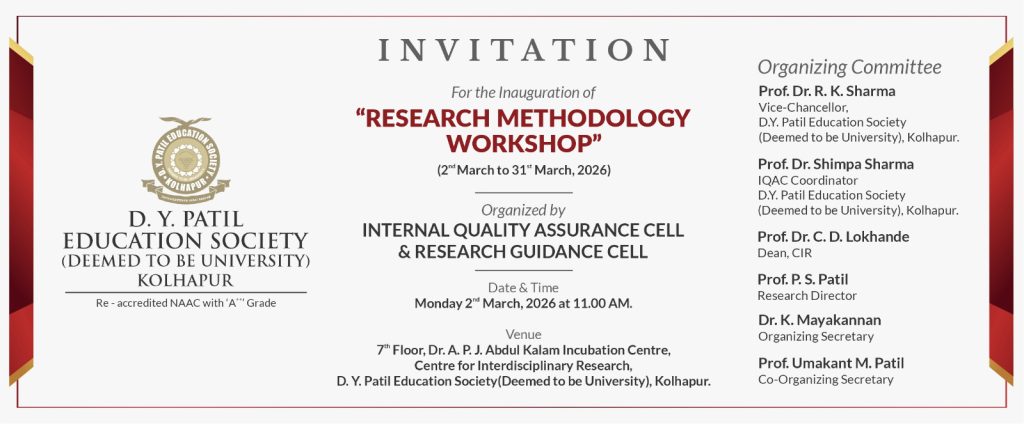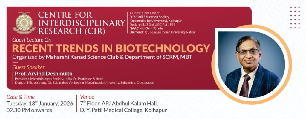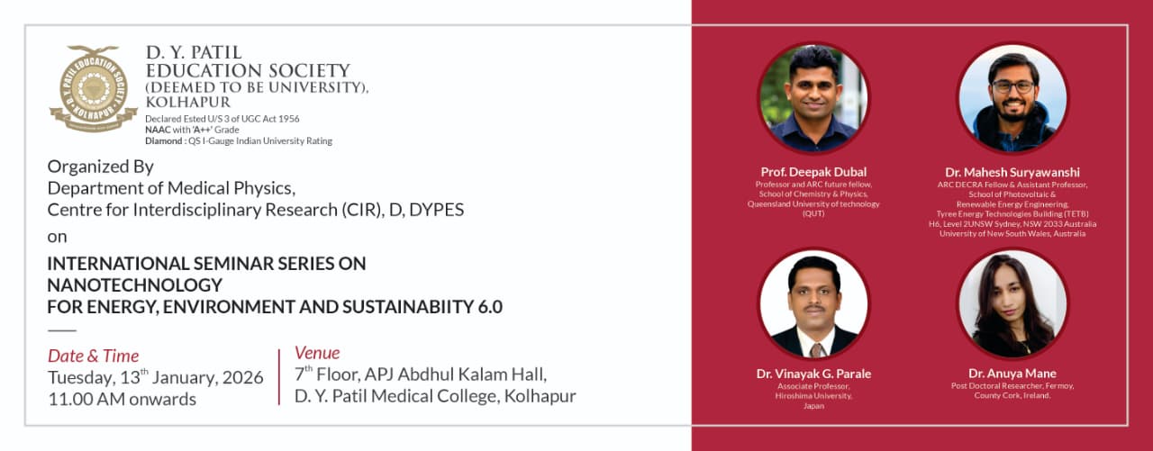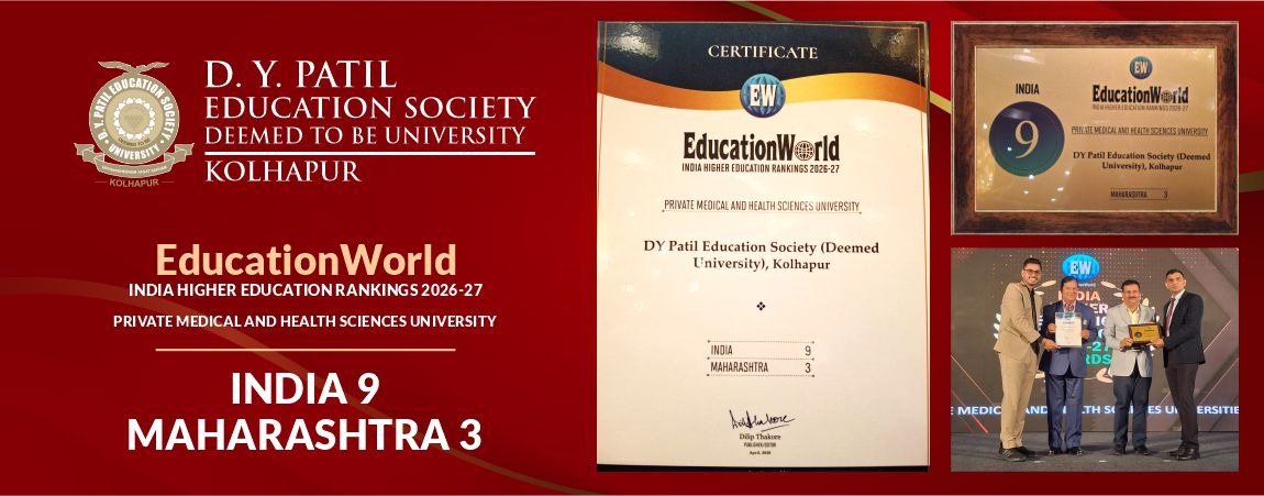 D. Y. Patil Education Society (Institution Deemed to be University) was established on 1st September 2005 under Section 3 of the UGC Act 1956. Since then, the University has developed into one of the premier educational. Institutes in the country offering undergraduate and postgraduate programmes in various disciplines in Medicine and Interdisciplinary fields, fulfilling the aspirations of students hailing from several parts of the country. The University comprises of a Medical. College, Nursing College, School. of Hospitality Studies which are actively engaged in teaching at UG, PG and Diploma levels as well as a Centre for Interdisciplinary Research.